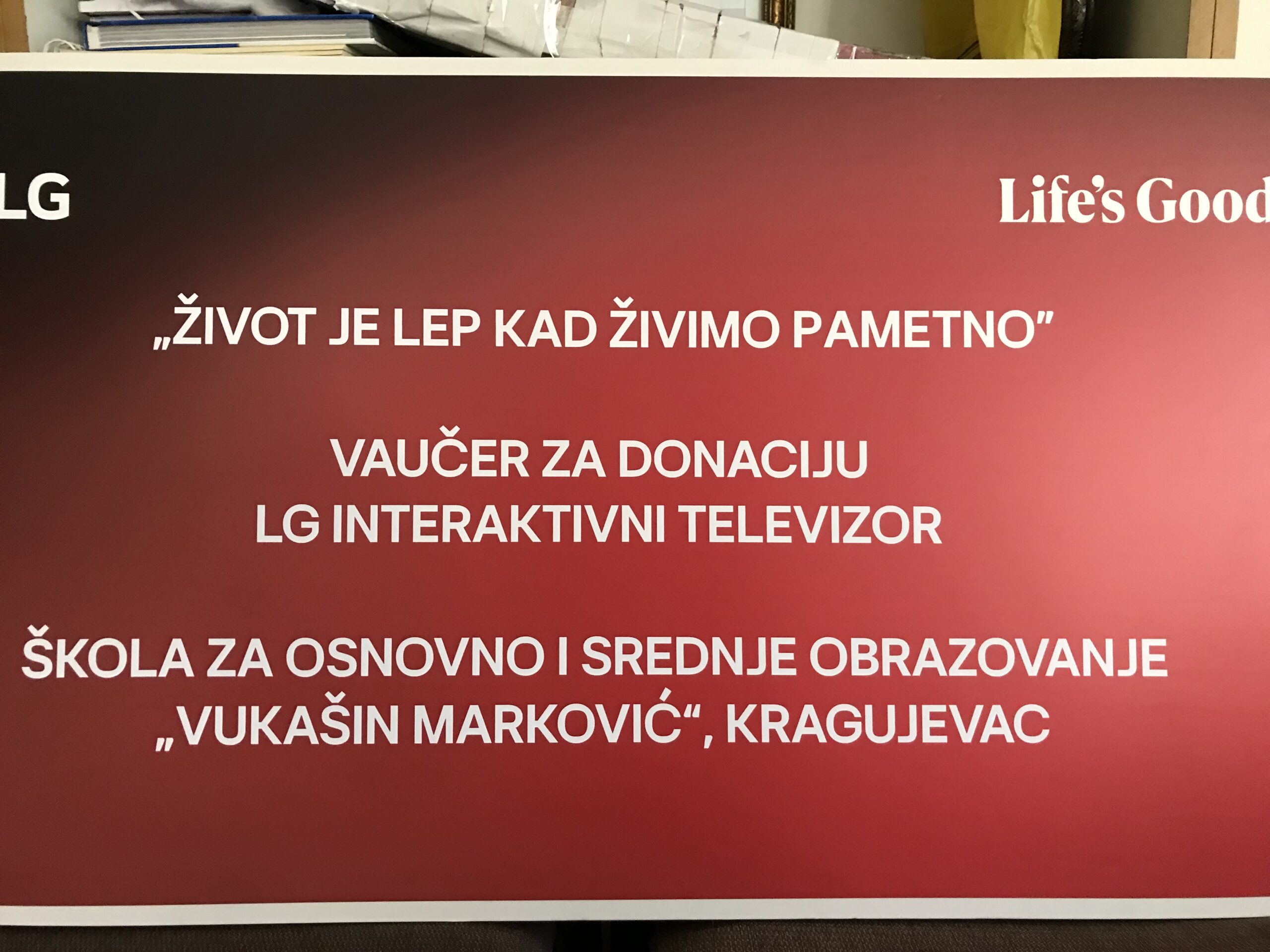 U subotu, 14.06.2025.godine, LG servisni karavan je boravio u našem gradu. Pod motom „Život je lep kada živimo pametno“ građani su bili u prilici da se upoznaju sa najnovijim LG uređajima koji omogućavaju efikasnije i pametnije upravljanje potrošnjom energije. Tom prilikom je našoj školi uručena izuzetno vredna nagrada – LG interaktivni televizor.